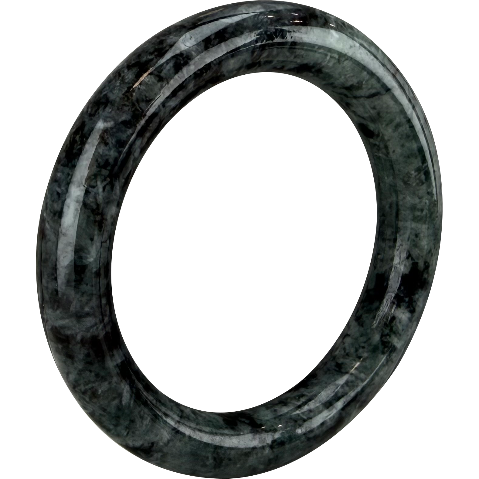 Embrace harmonious energy. The 'Black Panda' jadeite bangle combines a stark black and white contrast with a rare, serene hint of green, symbolizing growth and balance.