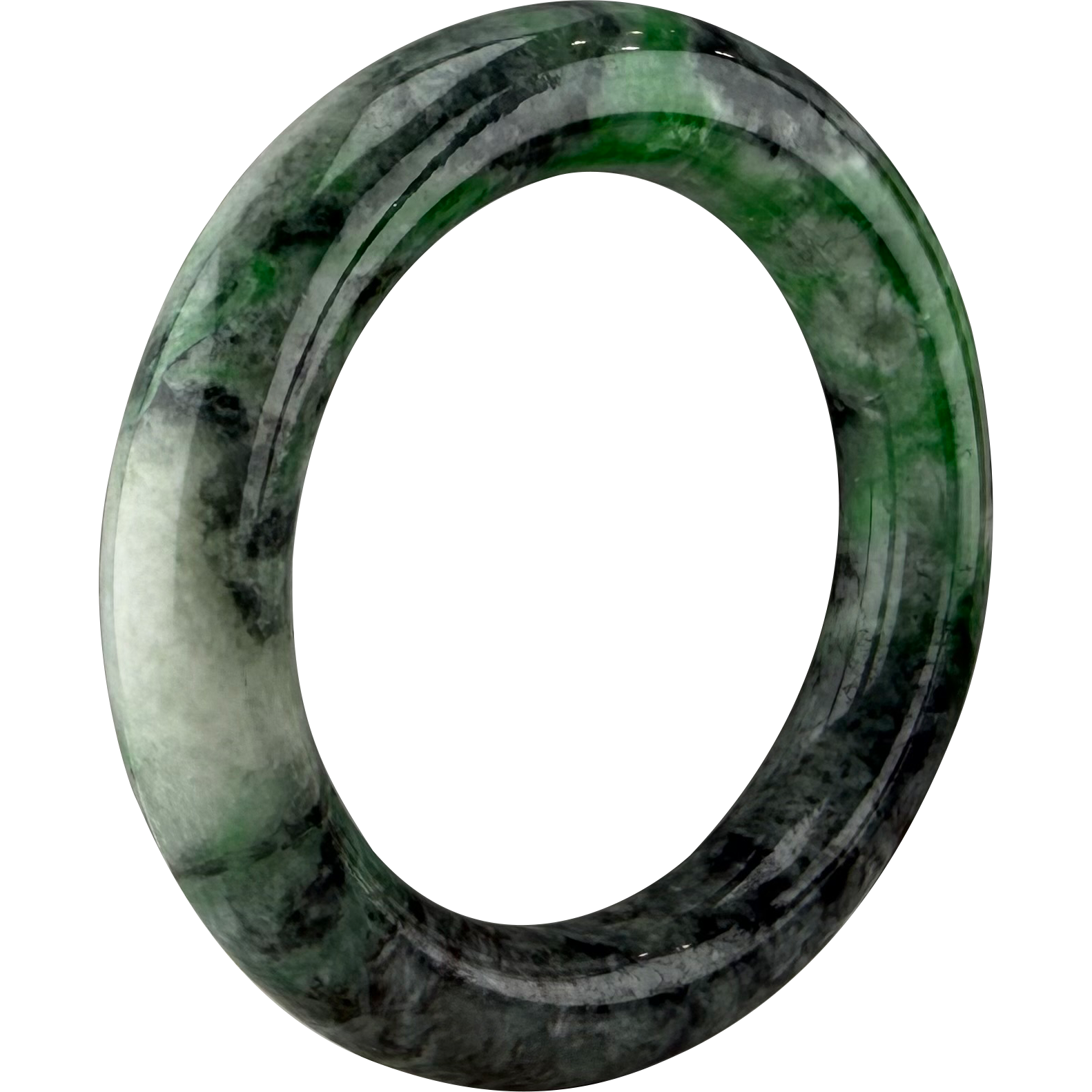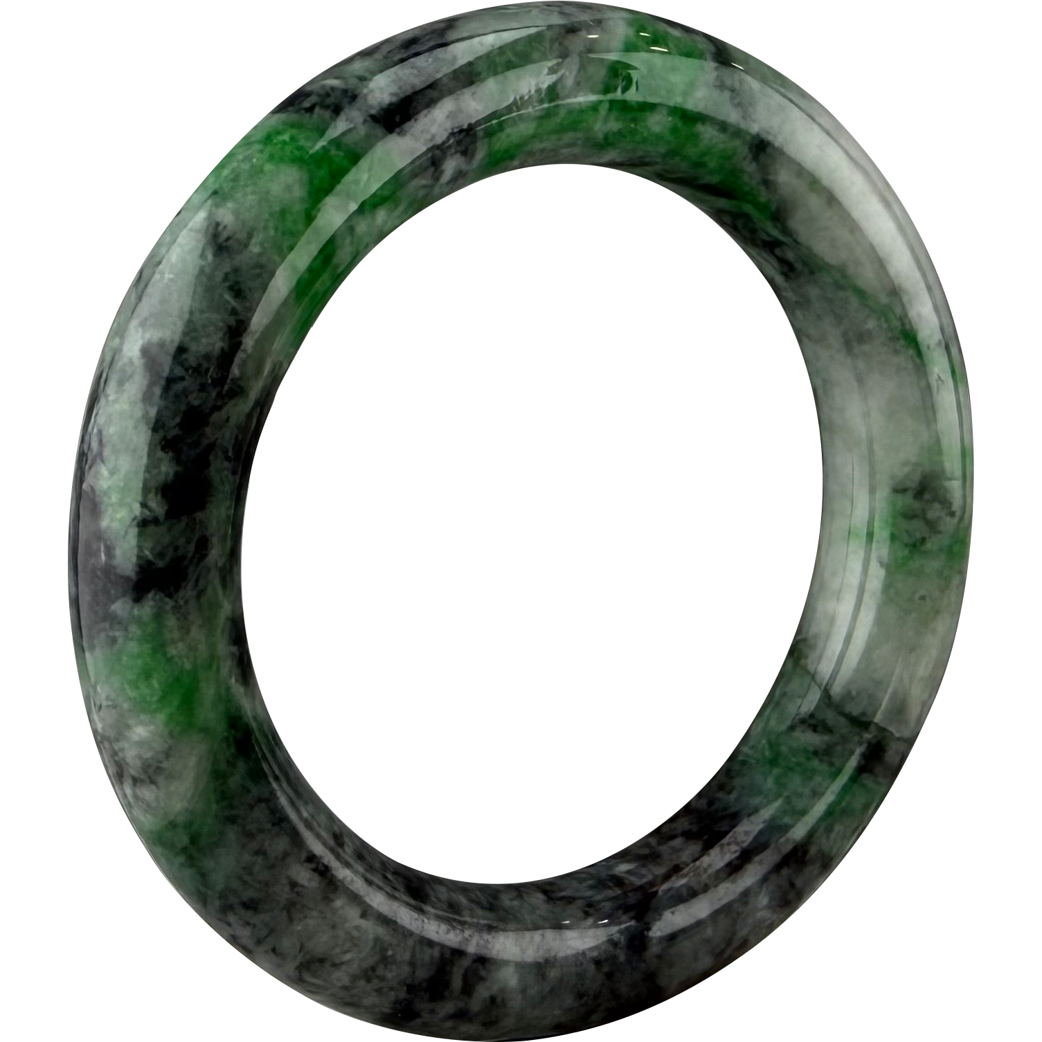 The 'Black Panda' Jadeite Bangle. Featuring a stunning black & white contrast with a rare hint of green. A wearable symbol of yin-yang balance.