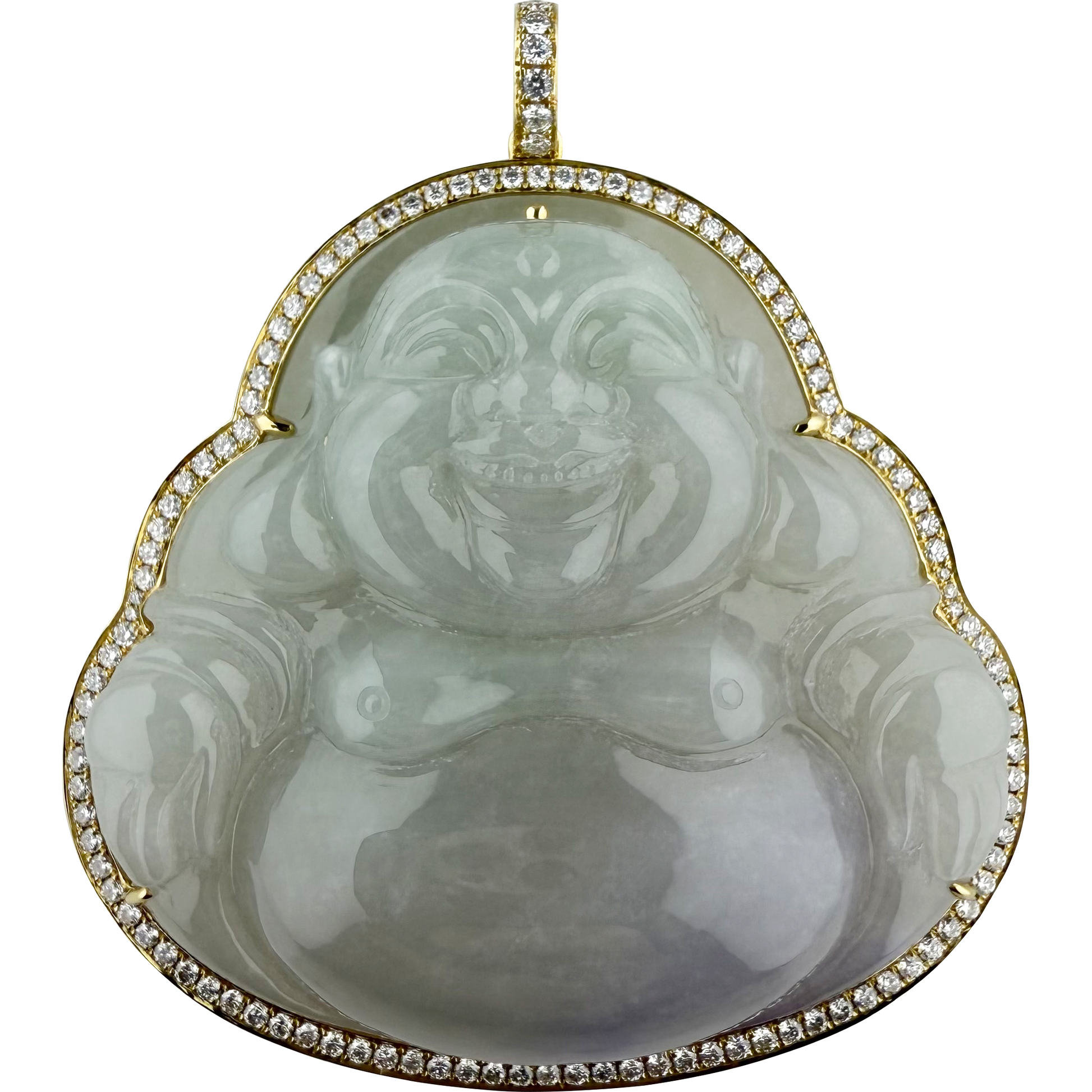 hashtag: #IcyLaughingBuddha #LavenderJade #JadeiteJewelry #LabDiamonds #EthicalLuxury #ModernHeirloom #FineJewelry #LaughingBuddha #GoodFortune #JoyfulJewelry #GemstoneCarving #18kGold #JewelryDesign #SpiritualJewelry #UniqueJewelry #JadeCollector #bookooj #bookoojade View full details